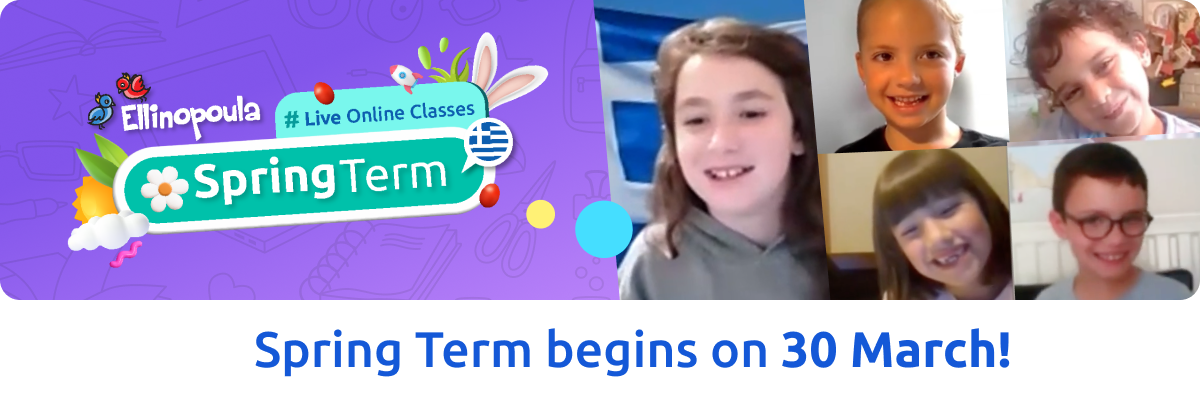 The classes are based on the Ellinopoula platform curriculum for ages 5+ and are delivered through Zoom by certified Greek language teachers.