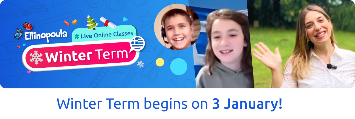 The classes are based on the Ellinopoula platform curriculum for ages 5+ and are delivered through Zoom by certified Greek language teachers.